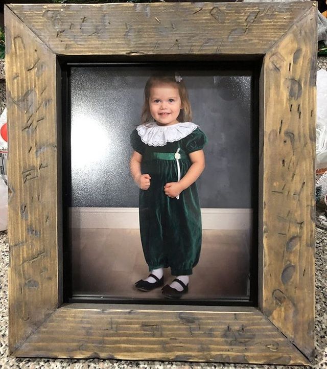 Ah, memories. That's exactly what we created on a trip to Pigeon Forge, TN in the summer of 2017. My Mother-in-Law's birthday is in August, so the trip was still fresh in her mind. I bought this frame from Michael's using a coupon (bargain!) and wood burned the design into it. The picture was part of a photo shoot on the last day of our vacation out in front of our cabin. The cabin was huge, and this vacation was actually my daughter's first vacation ever! What a great reminder of a great trip!
